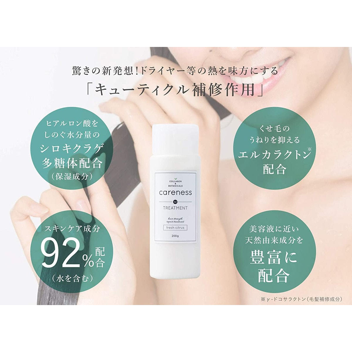 コラーゲンをはじめとするスキンケア成分92%配合!まるで美容液のようなトリートメントです。